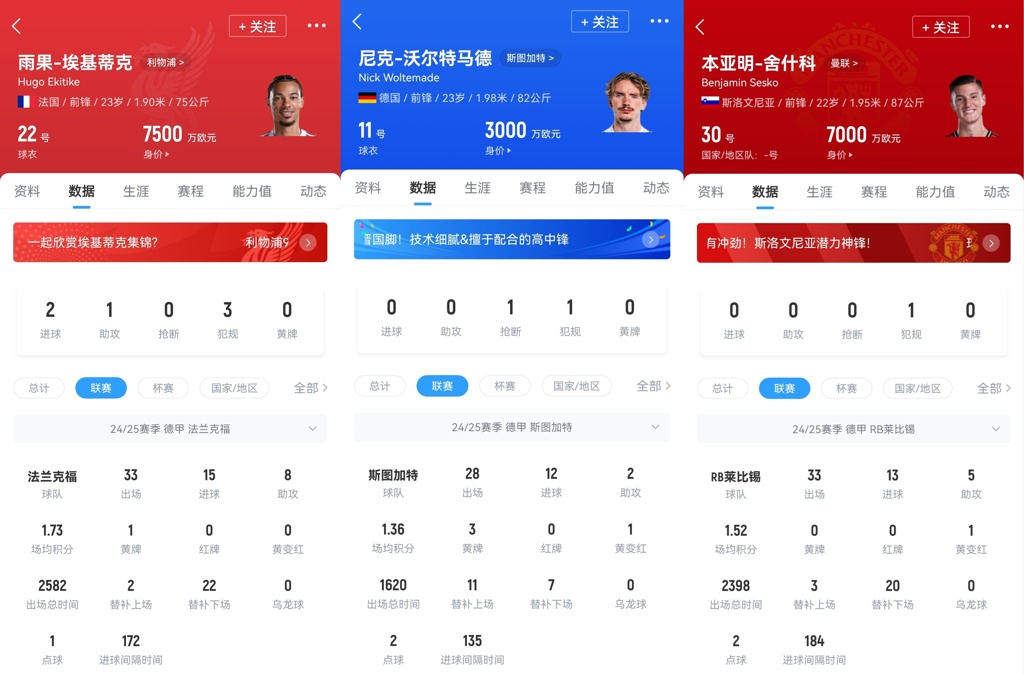 埃基蒂克15球9500万 舍什科13球8500万 沃尔特马德12球9000万