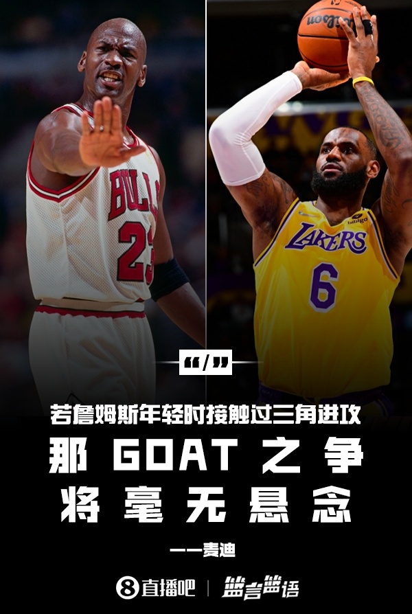 “倘若勒布朗在职业生涯早期就接触三角进攻,他的技术全面性将获得巨大提升,”麦迪说,“现在的他已经不再具备昔日的速度和超强爆发力,但如给现在的他配备巅峰期的运动能力、速度与敏捷性,再将其置于三角进攻体系中,我认为史上最佳球员的归属将毫无悬念。”
